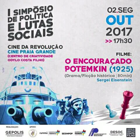 O Grupo de Estudos de Políticas, Lutas Sociais e Ideologia (GEPOLIS) em parceria com o Cine Praia Grande exibirá nesta segunda (2), as 17h30, a sessão Cine da Revolução com o filme O Encouraçado Potemkin. A sessão será única com entrada Franca.