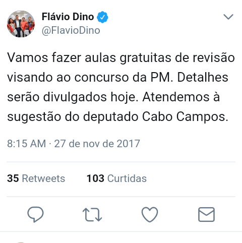 O governador do Maranhão, Flávio Dino, anunciou através do Twitter, nesta segunda-feira (27), que o governo disponibilizará aulas gratuitas da Polícia Militar, que acontecerão no dia 17 de dezembro.