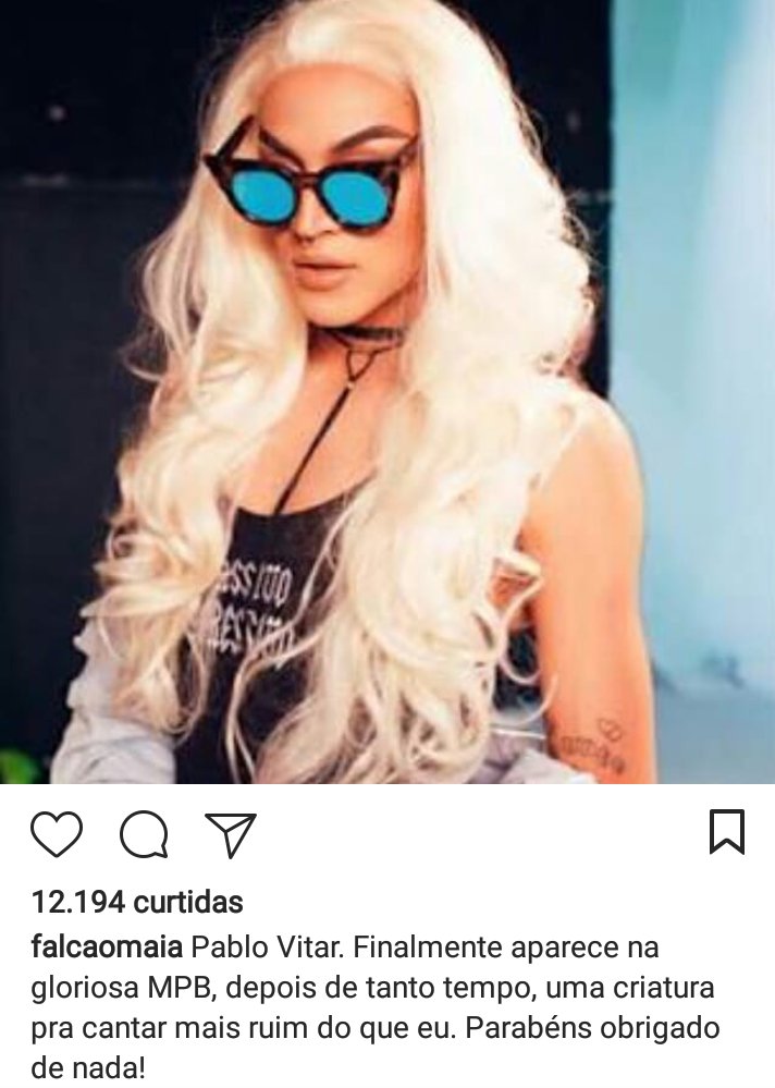 Vale lembrar também que o cantor Falcão usou sua conta no Instagram para declarar sua opinião a respeito da cantora: