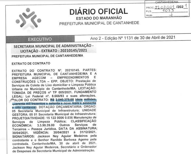 O amigo de Kabão, Ronildo Barbosa Ageme, é proprietário da AGECOM – Empreendimentos e Construções LTDA, que fica localizada em Cantanhede, onde fatura milhões em diversas outras prefeituras no Maranhão.
