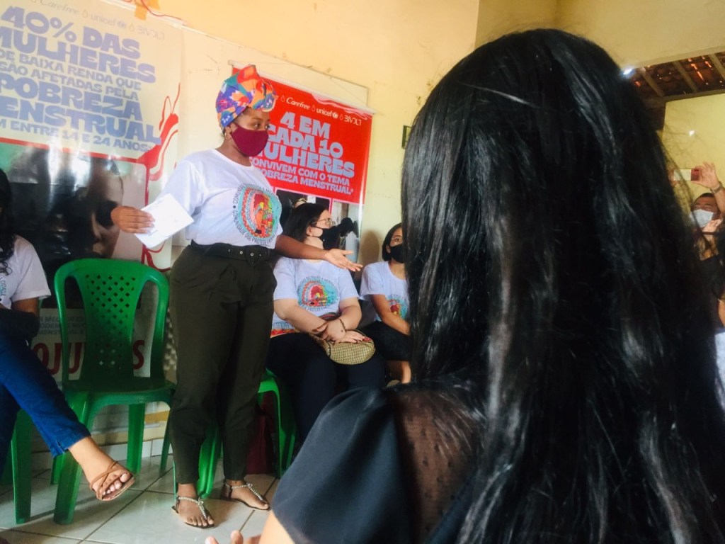 Durante as entregas, uma roda de conversa realizada pelo coletivo de meninas líderes do projeto menina cidadã do UNICEF, permitiu que houvesse uma discussão sobre saúde menstrual e os enfrentamentos acerca da pobreza menstrual na região. O momento foi uma oportunidade para que as meninas compreendessem a necessidade de diálogos sobre dignidade menstrual nesse período da vida de meninas e adolescentes.