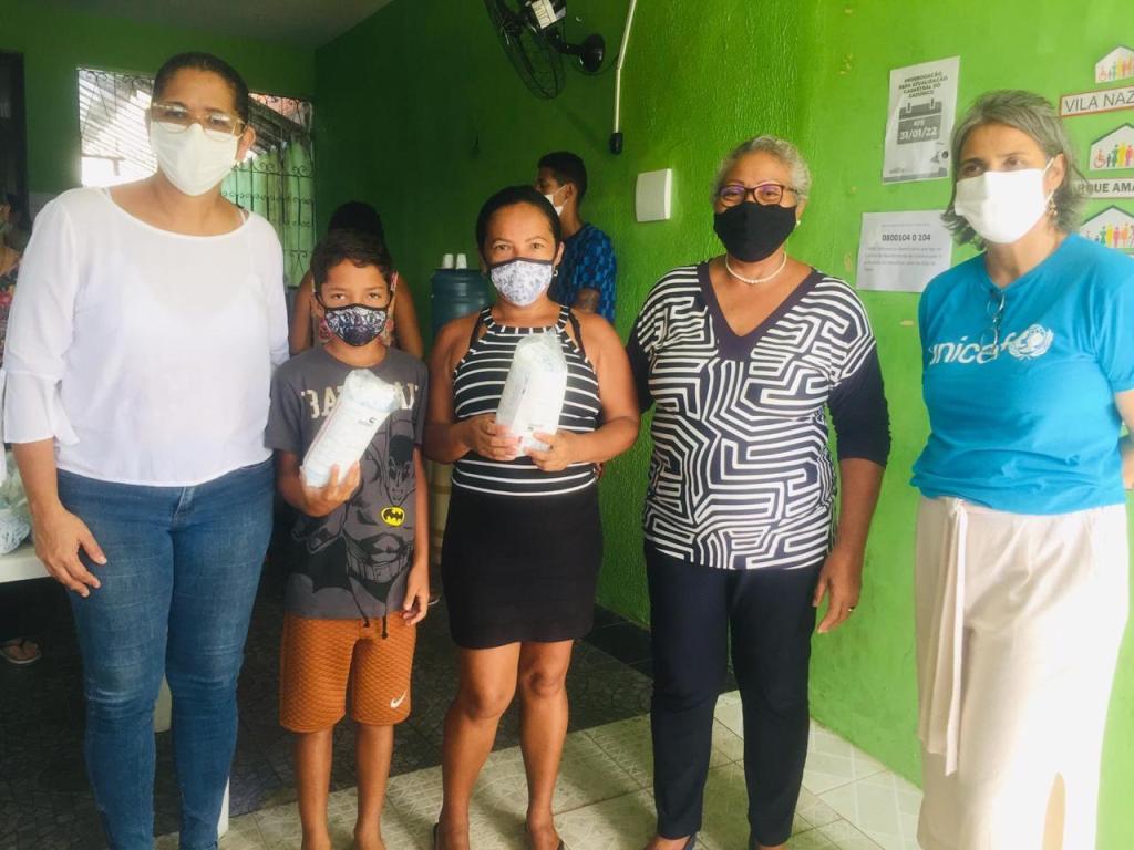 Crianças e adolescentes de famílias de comunidades em situação de vulnerabilidade social de São Luís, receberam na última sexta-feira, 19, mais de 4 mil máscaras de proteção contra a covid-19, distribuídas em 96 pacotes, doadas pelo Fundo das Nações Unidas para a Infância (UNICEF). As famílias beneficiadas são atendidas no Centro de Referência e Assistência Social (CRAS), do Bairro de Fátima. Ao todo, 120 mil máscaras estão sendo distribuídas às famílias da capital atendidas em CRAS e Centro de Referência Especializado de Assistência Social (CREAS) , tendo em vista a estratégia de enfrentamento a pandemia. As doações são uma parceria entre o UNICEF, Secretaria Municipal da Criança e Assistência Social (SEMCAS) e Fundação Josué Montello e a empresa Cummins.