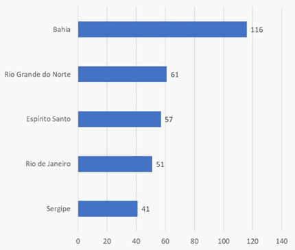 A Bahia, estado do Nordeste que concentra mais ativos da Petrobrás à venda, teve forte participação nesses resultados, após o encolhimento da estatal na região, com as vendas dos campos terrestres na bacia do Recôncavo e mais recentemente da Refinaria Landulpho Alves (Rlam) e sua logística de terminais e de armazenamento. Desde 2015, a Petrobrás colocou, ao todo, 378 ativos em desinvestimento, sendo 116 na Bahia (31% do total), segundo levantamentos do Ineep (vide gráfico abaixo).