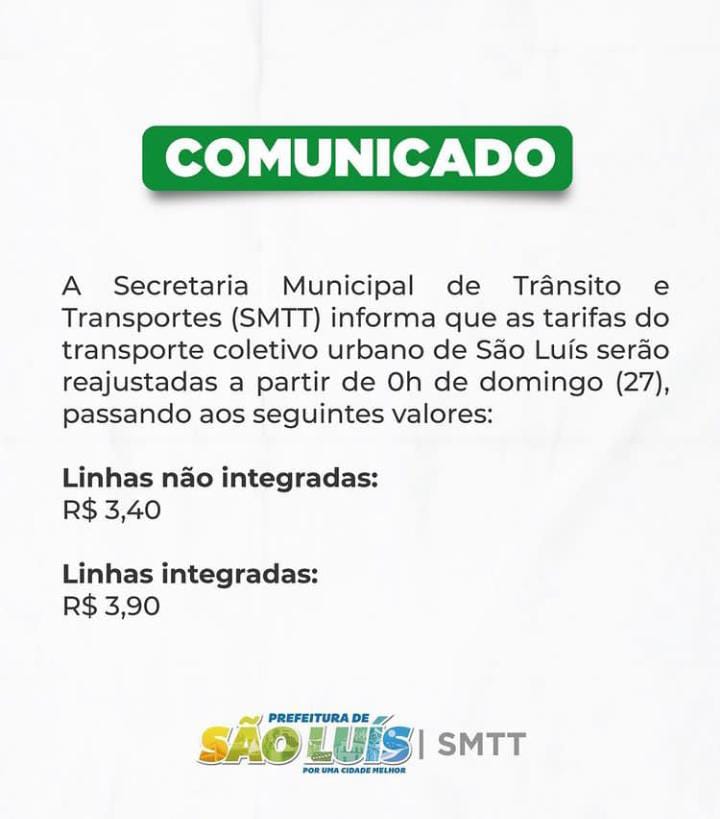 O que todos esperavam aconteceu. Nesta sexta-feira (25), o Prefeito Eduardo Braide (Podemos) anunciou que através da SMTT, que a passagem do transporte coletivo terá um aumento no valor, chegando ao preço de R$ 3,90.