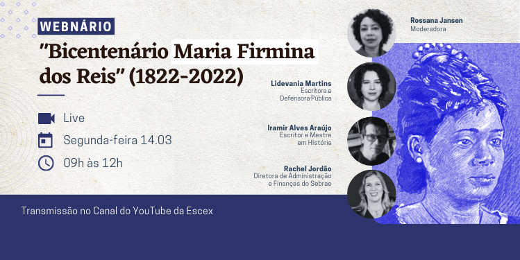 A iniciativa da Escex se une a várias homenagens prestadas à intelectual pelo seu bicentenário. Nascida em São Luís, em 1822, Maria Firmina é considerada a primeira autora negra do Brasil com o romance Úrsula. O evento será transmitido pelo Canal do YouTube da Escex no endereço https://www.youtube.com/c/ESCEXEscolaSuperiordeControleExternoTCEMA.