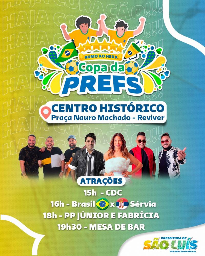 “É o momento de juntar a nossa energia para torcermos muito pela nossa seleção, tendo como cenário, o nosso Centro Histórico. Vai ser um momento de muita alegria, com várias atrações e um super telão para transmitir a partida entre Brasil e Sérvia”, destacou o prefeito Eduardo Braide.