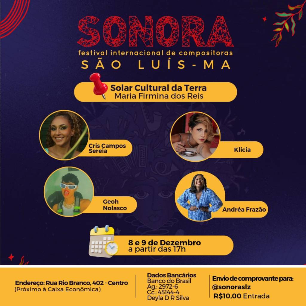 Um dos festivais mais aguardados do ano marca novamente presença na capital maranhense. Nos próximos dias 8 e 9 de dezembro, a Ilha do Amor terá mais uma edição especial do “Festival internacional de Compositoras Sonora São Luís”, que mostrará ao público maranhense os talentos e vozes maravilhosas das multiartistas que encantam todo o Brasil.