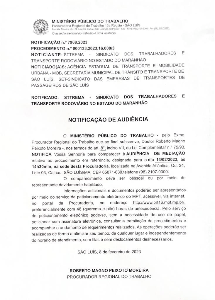 O Sindicato dos Rodoviários do Maranhão ressalta que a decisão está sendo tomada, em respeito ao MPT-MA, que se mostra disposto em mediar o impasse entre trabalhadores e patrões e por acreditar que o diálogo é o melhor caminho para que possamos alcançar um entendimento, que seja favorável para toda a categoria. A entidade reforça ainda, que se não houver nenhum avanço nas negociações, o movimento será retomado, com deflagração de greve geral no sistema e por tempo indeterminado, a partir das primeiras horas de quinta-feira, dia 16 de Fevereiro de 2023.