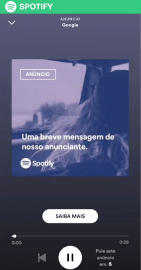 A plataforma Spotify veiculou anúncios do Google contra o PL 2630. Cabe observar que em seus termos de uso, o “Spotify afirma aos clientes que não permite conteúdos pagos que tratem de temas políticos”.