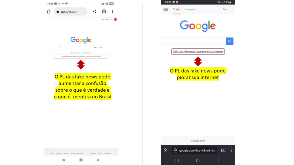 Evidências da ação do Google contra o PL 2630