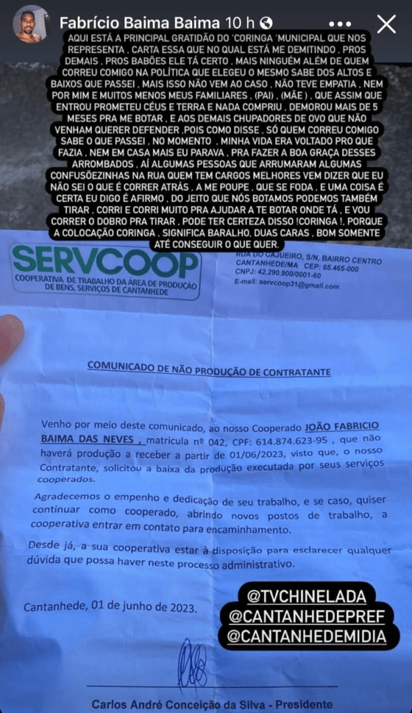 No município de Cantanhede, a administração do atual gestor Zé Martinho (PDT), conhecido como Kabão, tem sido alvo de sérias críticas e denúncias. Dentre as acusações mais graves está a demissão injusta de várias pais de família, levantando suspeitas de perseguição política.