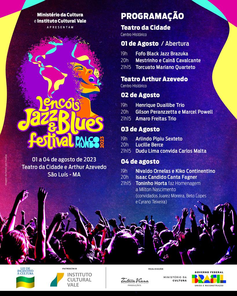 O Lençóis Jazz & Blues Festival – Palco Mundo 2023 recebe patrocínio do Instituto Cultural Vale, através da Lei Federal de Incentivo à Cultura, com realização da Tutuca Viana Produções. Na abertura, terá o apoio da Prefeitura de São Luís.