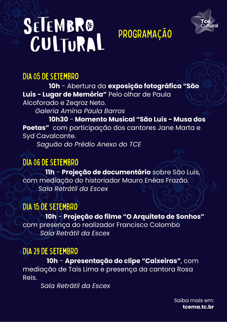 Aqui está a íntegra da programação do “Setembro Cultural no TCE”: