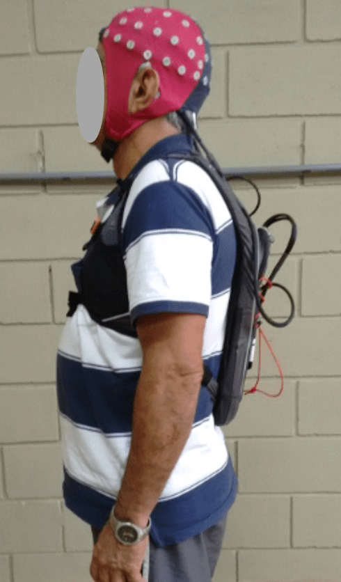 Por meio de eletroencefalografia feita com 64 eletrodos, foi registrada a atividade elétrica que chega ao nível do escalpo em cada um dos participantes durante a caminhada. São milhares de neurônios em atividade elétrica que ultrapassa tecidos e ossos, conseguindo ser registrada pelos eletrodos. “O registro é uma mistura de frequências. Há ondas cerebrais mais lentas e mais rápidas. De acordo com as medidas que fazemos desses sinais, sabemos quão forte é cada frequência, pois há padrões que usamos para indicar as diferentes frequências: teta, alfa, beta e gama, nessa ordem, da mais lenta para a mais rápida. Ao quantificar a força dessas frequências, conseguimos comparar as pessoas com e sem Parkinson para ver se existe alguma alteração relacionada à doença.”