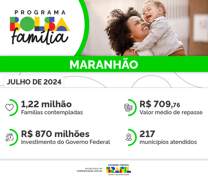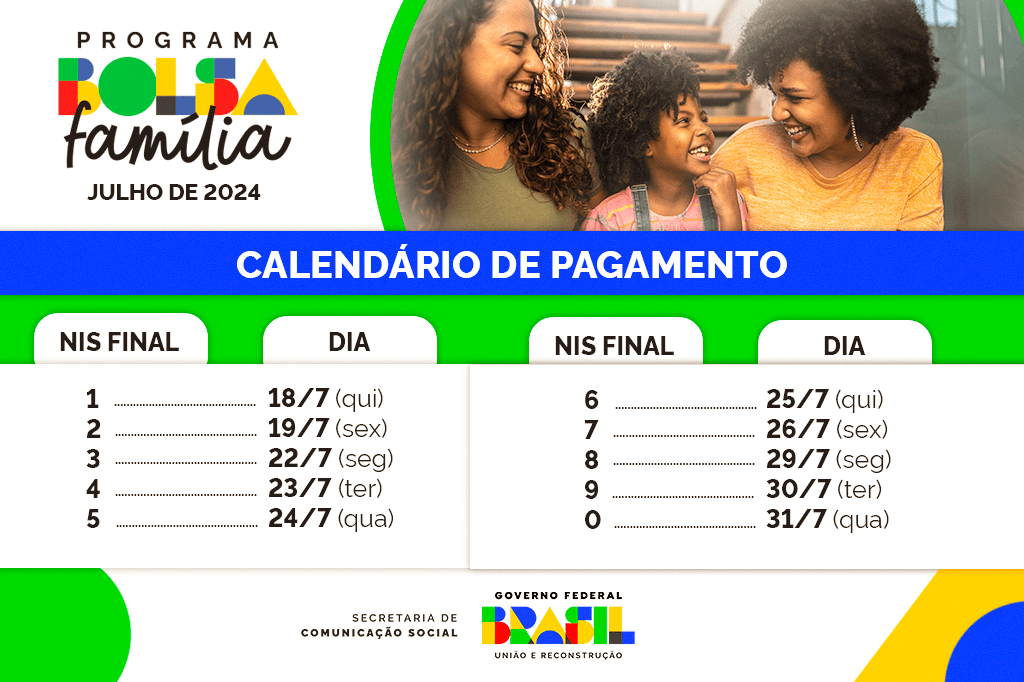 O cronograma de pagamento do Bolsa Família em julho tem início nesta quinta-feira, 18, em todo o país. Nos 217 municípios do Maranhão, 1,22 milhão de famílias serão contempladas a partir de um investimento de R$ 870 milhões do programa de transferência de renda do Governo Federal. O valor médio do benefício no estado em julho é de R$ 709,76. Os repasses são escalonados de acordo com o final do Número de Identificação Social (NIS) dos beneficiários e seguem até o dia 31 (confira tabela).