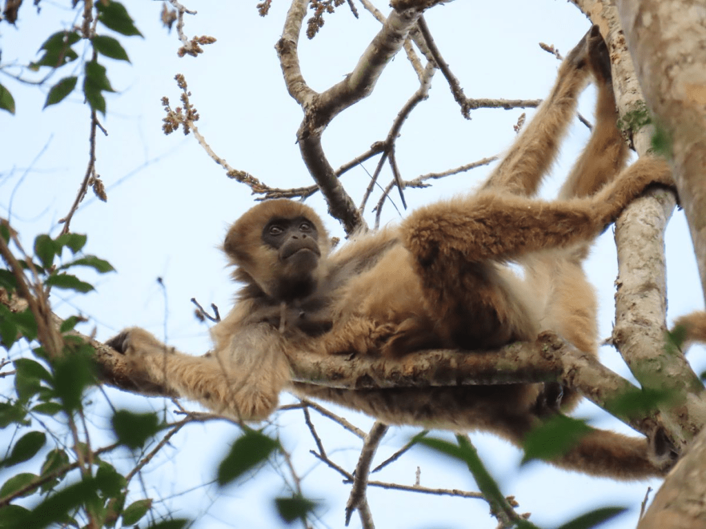 No começo da manhã e no fim da tarde, quando as temperaturas são mais amenas e os galhos e folhas estão mais frios, é mais provável detectar os muriquis pelo calor emanado de seus corpos, de braços alongados e barriga protuberante.