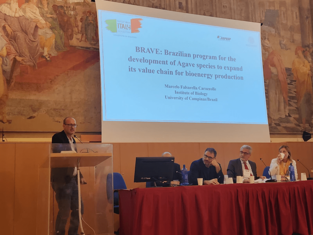 O trabalho vem sendo conduzido com apoio (projetos 20/02524-0, 22/09349-5, 23/16853-4 e 24/06624-0) da FAPESP no âmbito do projeto Brazilian Agave Development (Brave, Desenvolvimento do Agave Brasileiro), uma parceria que envolve a Universidade Estadual de Campinas (Unicamp), a empresa Shell e outras instituições de ensino e pesquisa, como Senai Cimatec, Universidade Federal do Recôncavo da Bahia (UFRB), Universidade de São Paulo (USP) e Universidade Estadual Paulista (Unesp). Resultados recentes foram apresentados na segunda-feira (14/10), durante a FAPESP Week Itália, pelo professor do Instituto de Biologia da Unicamp (IB-Unicamp) Marcelo Falsarella Carazzolle, que coordena a iniciativa ao lado de Gonçalo Pereira, também do IB-Unicamp. O evento, que terminou ontem (15/10), foi realizado em parceria com a Alma Mater Studiorum – Università di Bologna (Unibo).