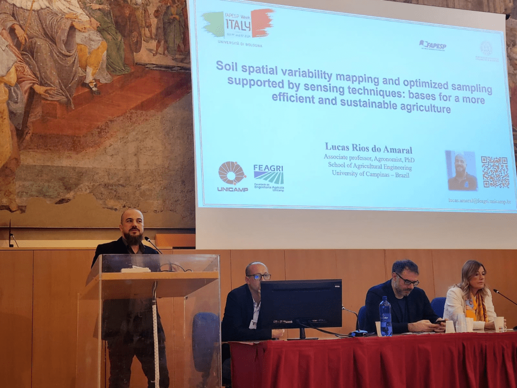 A palestra apresentada por Carazzolle integrou um painel dedicado a debater o sistema agroalimentar e o desenvolvimento sustentável. Outros participantes foram Lucas Rios do Amaral, da Faculdade de Engenharia Agrícola (Feagri) da Unicamp; Valda Rondelli e Matteo Vittuari, ambos do Departamento de Ciências Agrícolas e Alimentares da Unibo. A coordenação da mesa foi feita por José Paulo Molin, professor da Escola Superior de Agricultura Luiz de Queiroz (Esalq-USP).