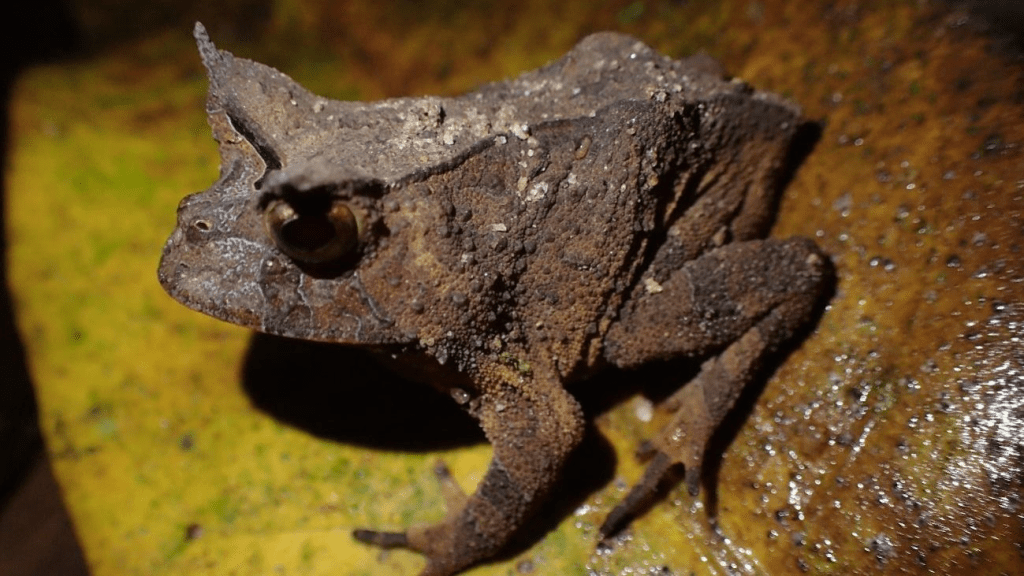 Gravações e fotografias enviadas por cidadãos cientistas permitiram o mapeamento de novas ocorrências do sapinho-de-chifre-paviotii (Proceratophrys paviotii), um anfíbio exclusivo da Mata Atlântica, no município de Santa Teresa, no Espírito Santo. Com a localização desses indivíduos, especialistas realizaram coletas inéditas de material genético e gravações do repertório vocal dessa espécie. O resultado desse trabalho está no artigo publicado nesta quarta (23) na revista internacional “PeerJ” por pesquisadores de instituições como Instituto Nacional da Mata Atlântica (INMA), Universidade Federal de Mato Grosso do Sul (UFMS) e Universidade Federal do ABC (UFABC).