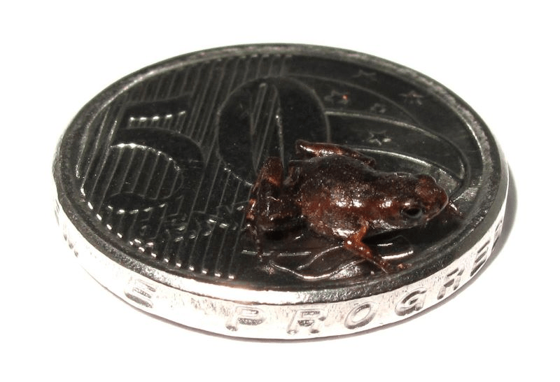 Os sapos-pulga ou rãs-pulga, como são conhecidas algumas espécies do gênero Brachycephalus, possuem adultos com menos de um centímetro de comprimento. Para ter uma ideia, podem se acomodar sobre a unha de um humano adulto ou sobre uma moeda de 50 centavos.