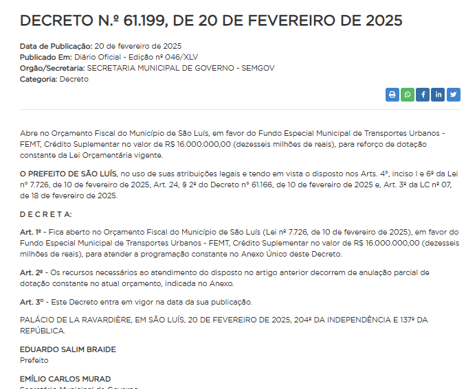 O decreto assinado pelo prefeito Eduardo Braide, que liberou R$ 16 milhões para o Fundo Especial Municipal de Transportes Urbanos (FEMT), foi encarado como uma “encenação” para atender aos interesses dos empresários do setor de transporte. A medida, publicada na última quinta-feira (20), ocorreu após uma liminar do Tribunal Regional do Trabalho da 16ª Região (TRT-16) encerrar a greve dos rodoviários, que paralisou o transporte público em São Luís por três dias.