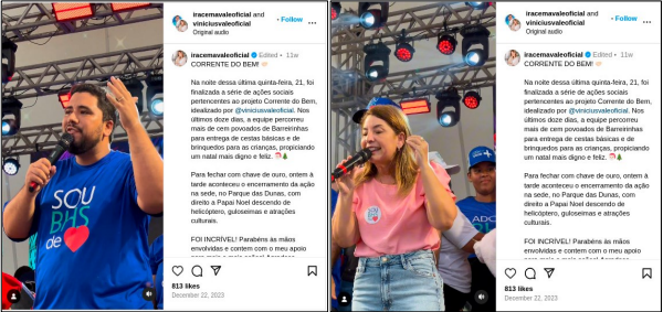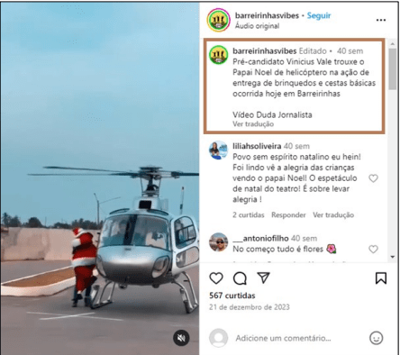 Em dezembro de 2023, os investigados organizaram um evento com megaestrutura de som, palco, helicóptero e distribuição de brinquedos, associado ao slogan “SOU BHS DE 💛”. A ação alega que o helicóptero utilizado foi contratado pela Assembleia Legislativa do Maranhão, configurando abuso de poder político. Publicações nas redes sociais que vinculavam o evento à campanha eleitoral foram posteriormente removidas, indicando tentativa de ocultação de provas.