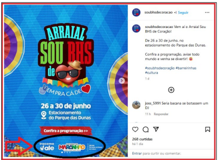 Em junho de 2024, o “Arraial Sou BHS de Coração” foi realizado no Parque das Dunas, com estrutura financiada pelo Governo do Maranhão. O evento exibia o slogan da pré-campanha de Marcus Vinicius, associando-o diretamente à festa pública. O Tribunal Regional Eleitoral (TRE-MA) chegou a conceder liminar para retirada dos materiais promocionais, mas o evento já havia sido realizado.
