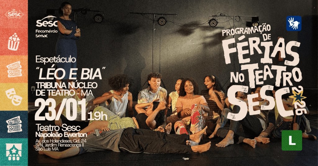 A Programação de Férias no Teatro Sesc 2026 terá a participação do Tribuna Núcleo de Teatro, que apresentará a montagem premiada “Léo e Bia”. A sessão única ocorrerá no dia 23 de janeiro, às 19h, no Teatro Sesc Napoleão Ewerton.